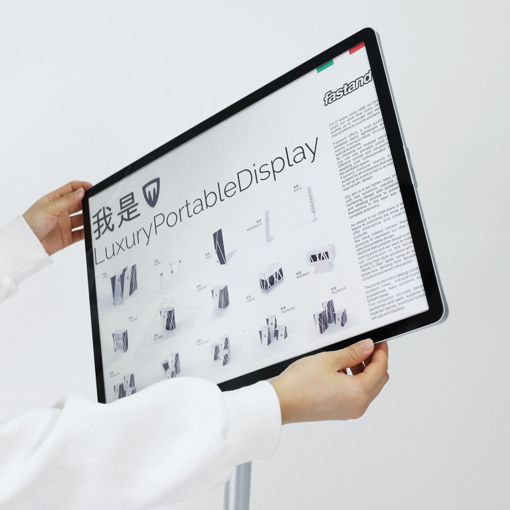 Ideal for use as a feature or information display, but also as an advertising poster holder or directional sign in environments like museums, exhibitions, and offices. It can be kept in a fixed position or moved easily; it is highly stable and suitable for crowded areas.