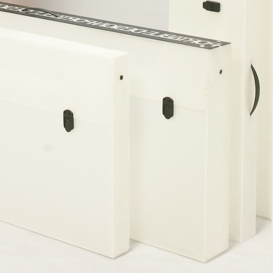 Medium size suitcase, white. Used in products where you want a lot of compactness in transport, in fact it measures only 6 cm in depth.