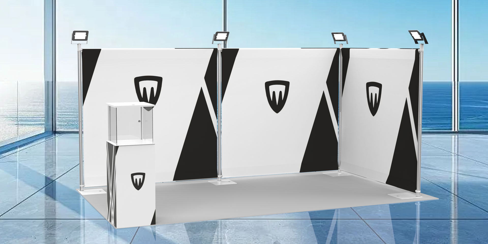 Designed and completely manufactured in Italy, it has been refined and engineered over the years, improving both its aesthetic and functional aspects. Thanks to its ease of use and straightforward construction, this system is highly appreciated by companies that want a practical and fast tool for participating in trade show events.