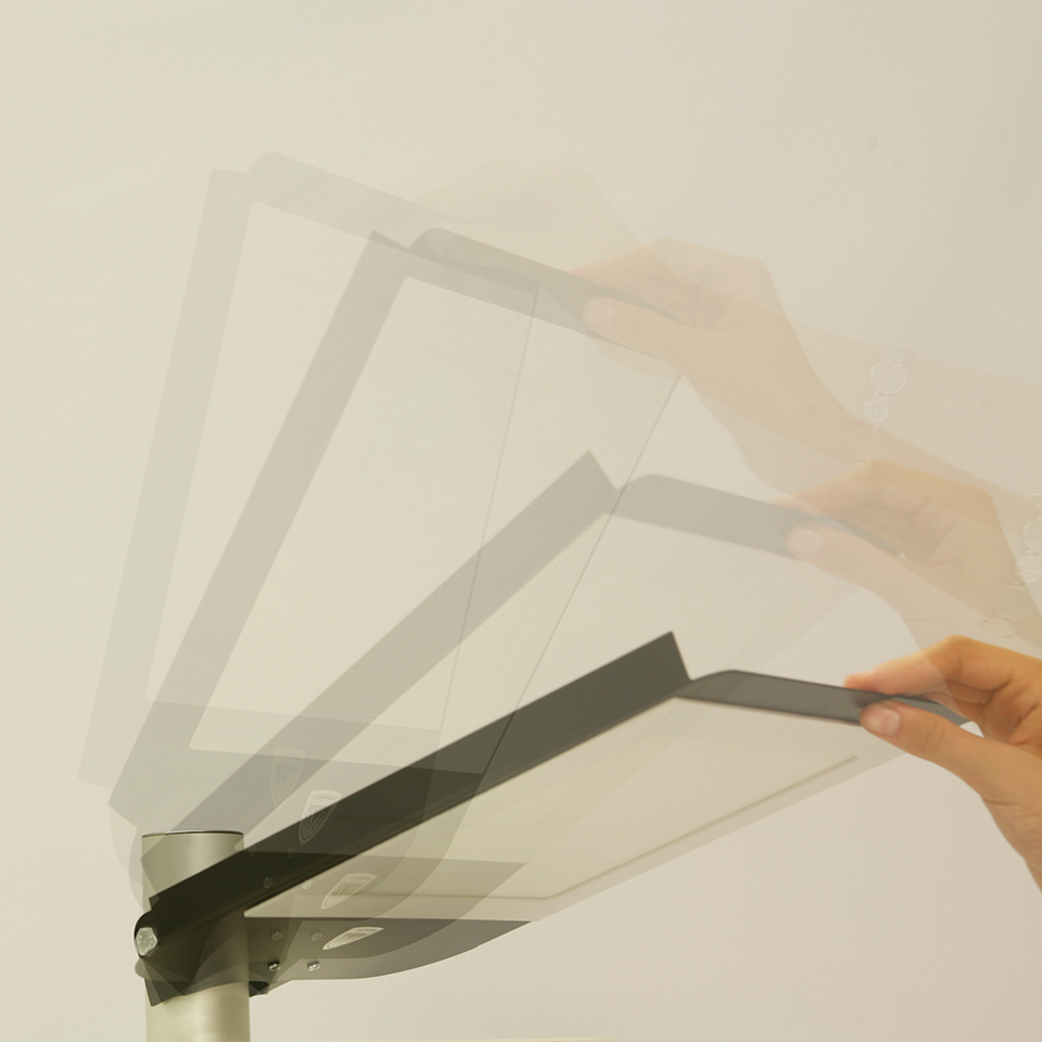 Once hooked to the structure (universal for all Fastand systems) you can in fact decide the adjustability and inclination of the lighthouse adapting it to any situation in the fair context.