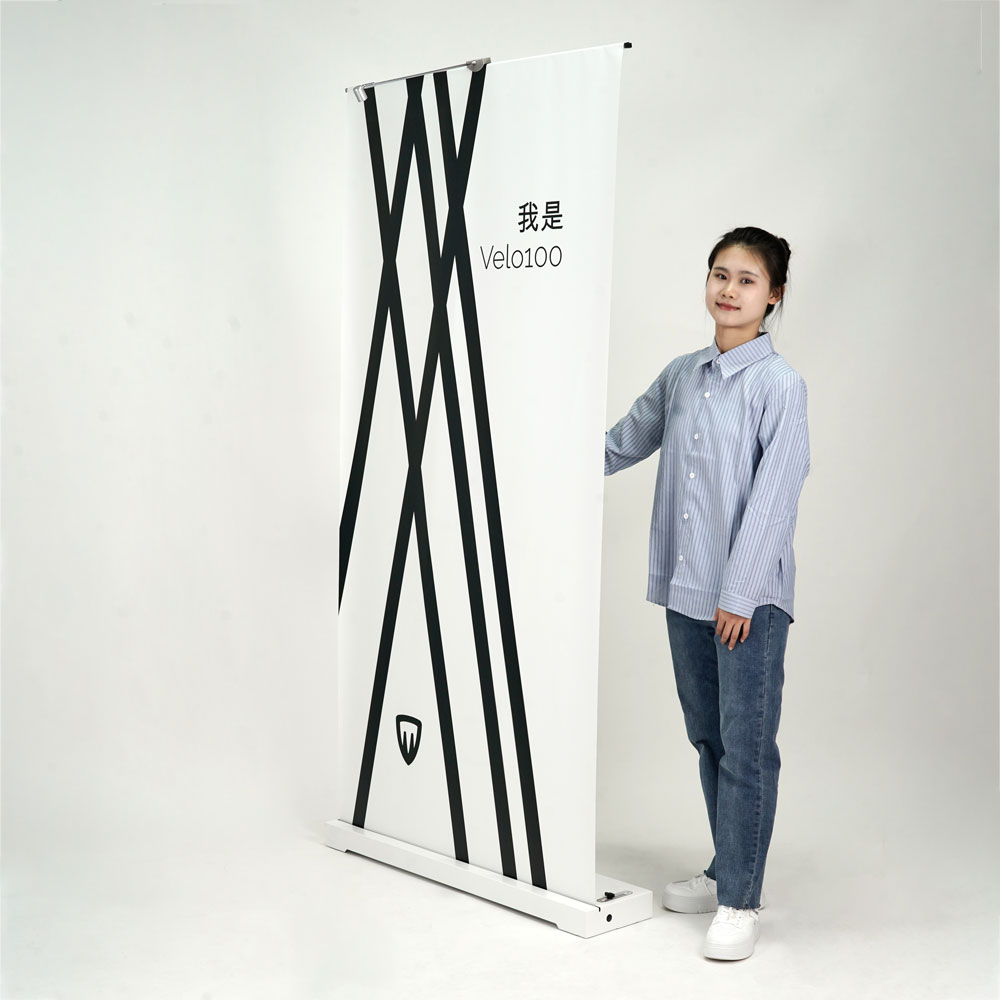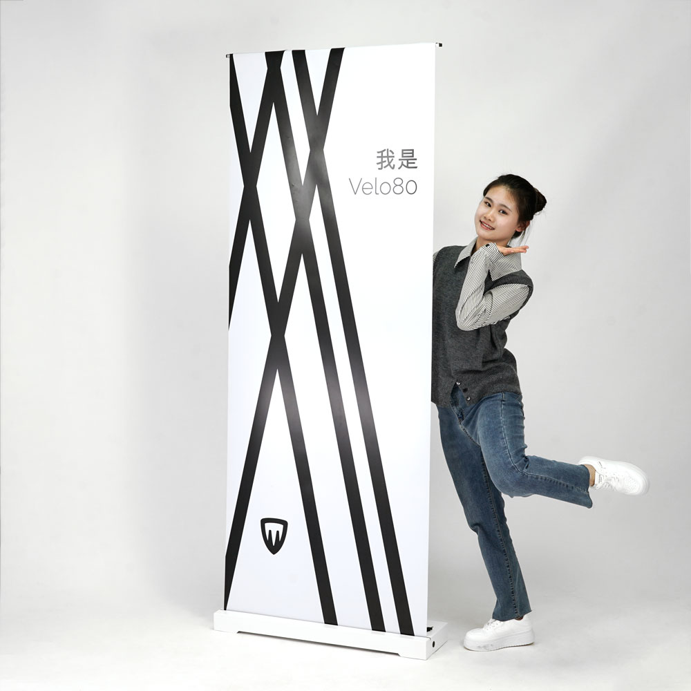 Abbiamo voluto creare un nuovo design per il nostro roll-up. Esteticamente compatto e pulito, da un impatto di forza ma anche di leggerezza e modernità. Non ci sono viti a vista, il che lo rende essenziale e futurista.